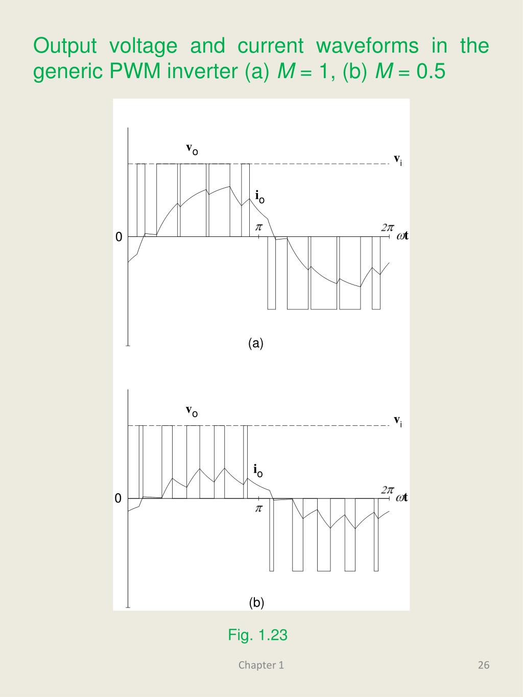 Output voltage and current waveforms in the generic PWM inverter (a) M = 1, (b) M = 0.5 Fig. 1.23 Chapter 1