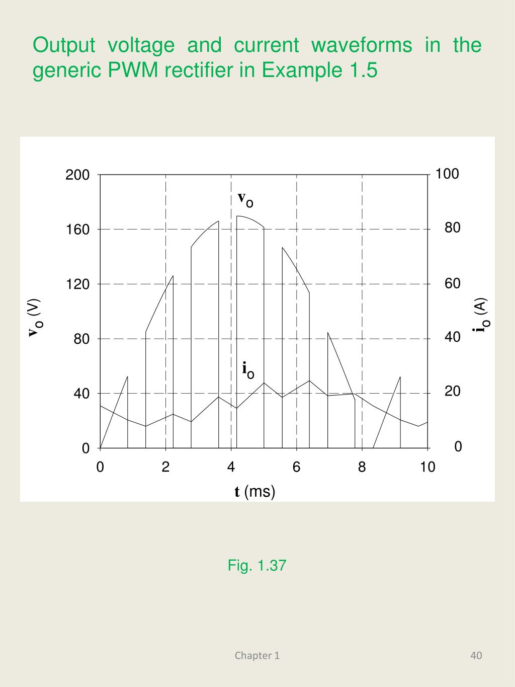 Output voltage and current waveforms in the generic PWM rectifier in Example 1.5 Fig. 1.37 Chapter 1