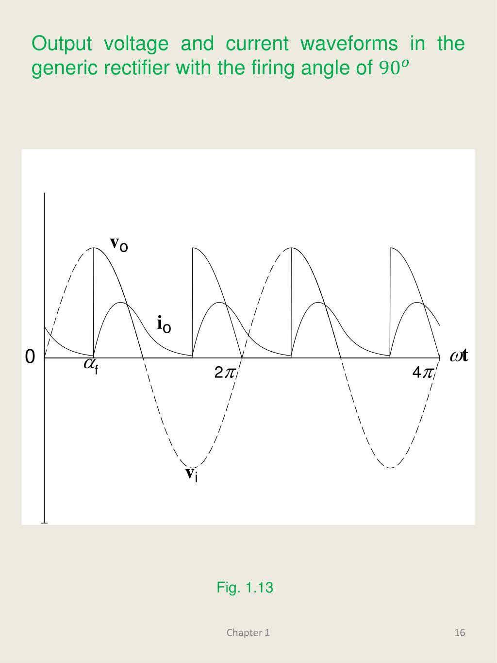 Output voltage and current waveforms in the generic rectifier with the firing angle of Fig. 1.13 Chapter 1