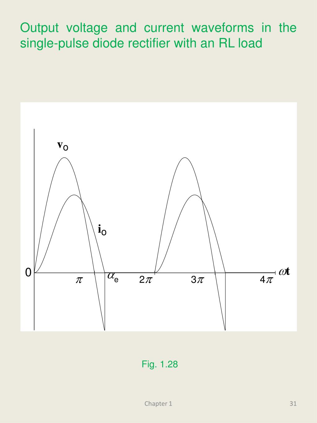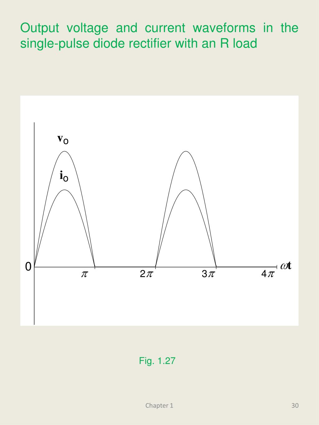Output voltage and current waveforms in the single-pulse diode rectifier with an R load Fig. 1.27 Chapter 1