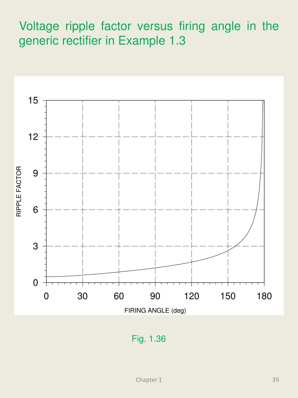 Voltage ripple factor versus firing angle in the generic rectifier in Example 1.3 Fig. 1.36 Chapter 1