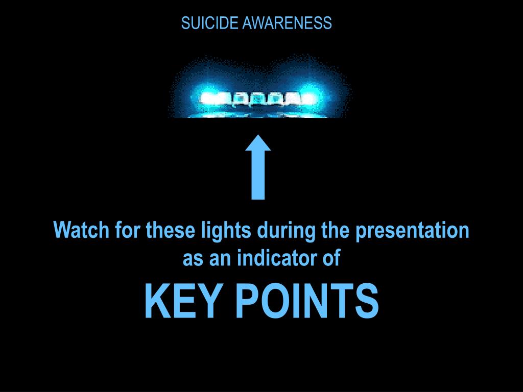 SUICIDE AWARENESS Watch for these lights during the presentation as an indicator of KEY POINTS