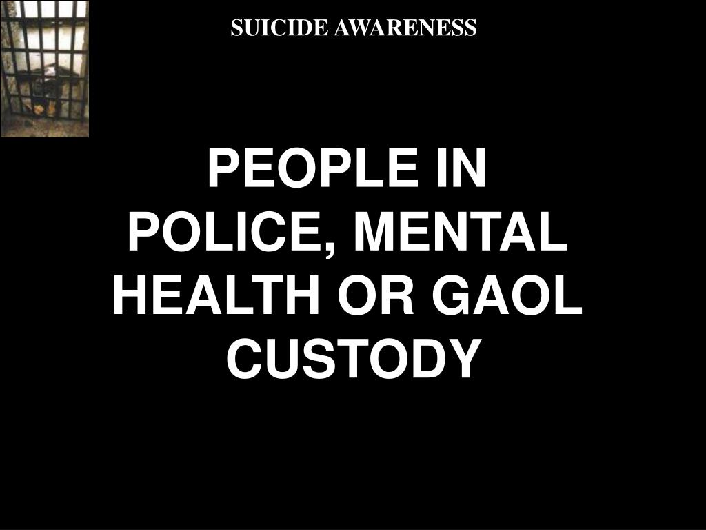 SUICIDE AWARENESS PEOPLE IN POLICE, MENTAL HEALTH OR GAOL CUSTODY