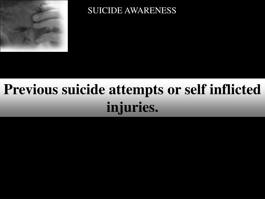 SUICIDE AWARENESS Previous suicide attempts or self inflicted injuries.