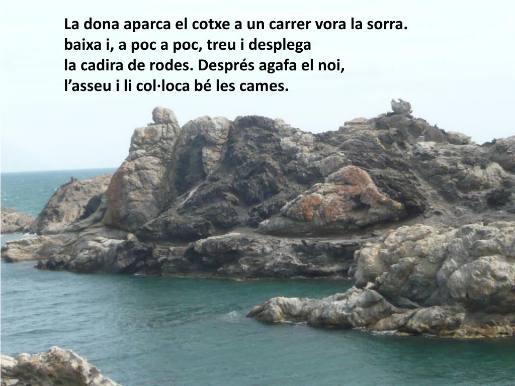 S’aparta uns quants cabells que li van a la cara, i, sentint com li oneja la faldilla, va empenyent la cadira cap al mar. Entra a la platja pels taulons de fusta, però els taulons s’aturen a uns quants metres de l’aigua.