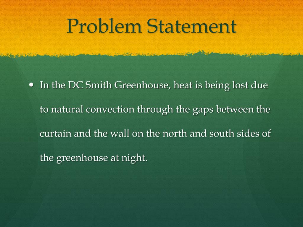 Problem Statement • In the DC Smith Greenhouse, heat is being lost due to natural convection through the gaps between the curtain and the wall on the north and south sides of the greenhouse at night.