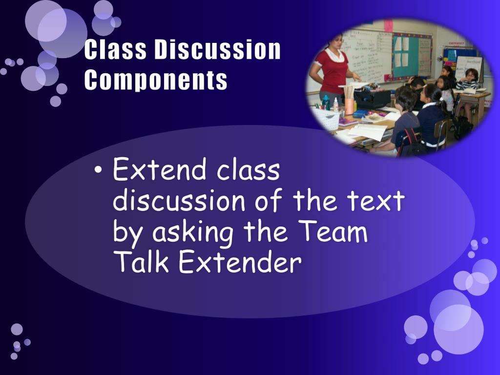 Class DiscussionComponents • Extend class discussion of the text by asking the Team Talk Extender