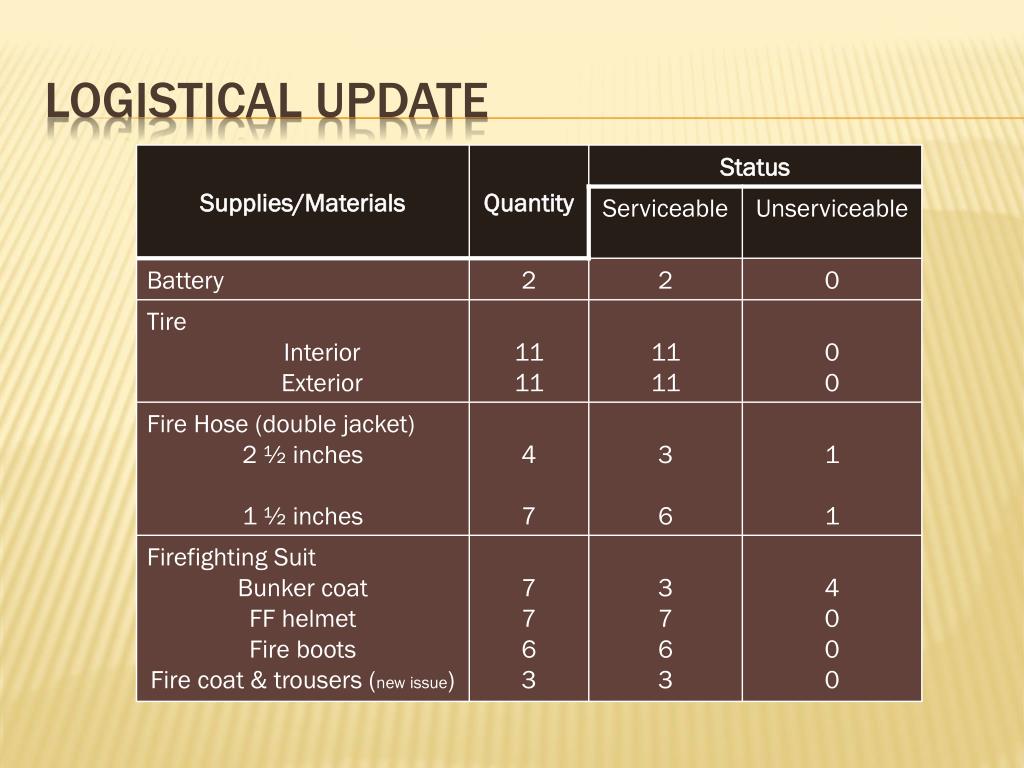 CB BANGOY SR FIRE STATION Situational Update. BACKGROUND.
