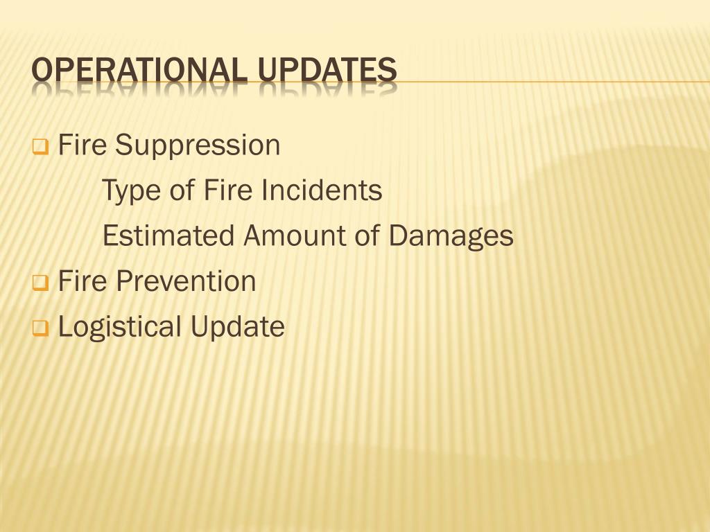 Fire Suppression Type of Fire Incidents Estimated Amount of Damages • Fire Prevention • Logistical Update OPERATIONAL UPDATES