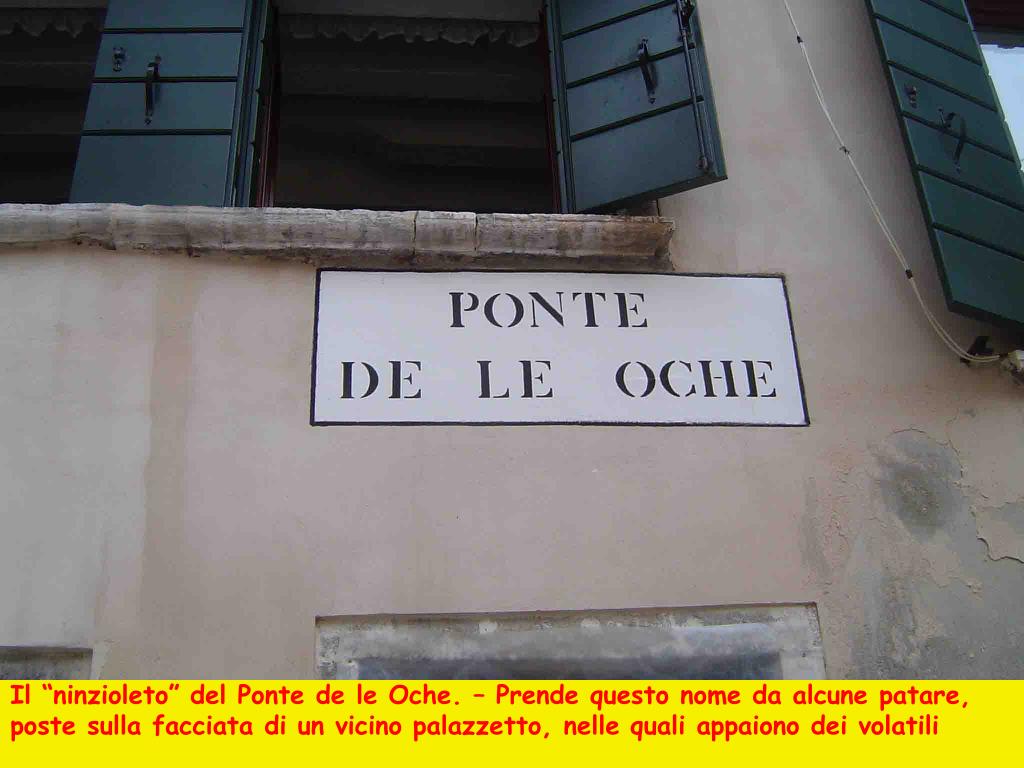 Il “ninzioleto” del Ponte de le Oche. – Prende questo nome da alcune patare, poste sulla facciata di un vicino palazzetto, nelle quali appaiono dei volatili