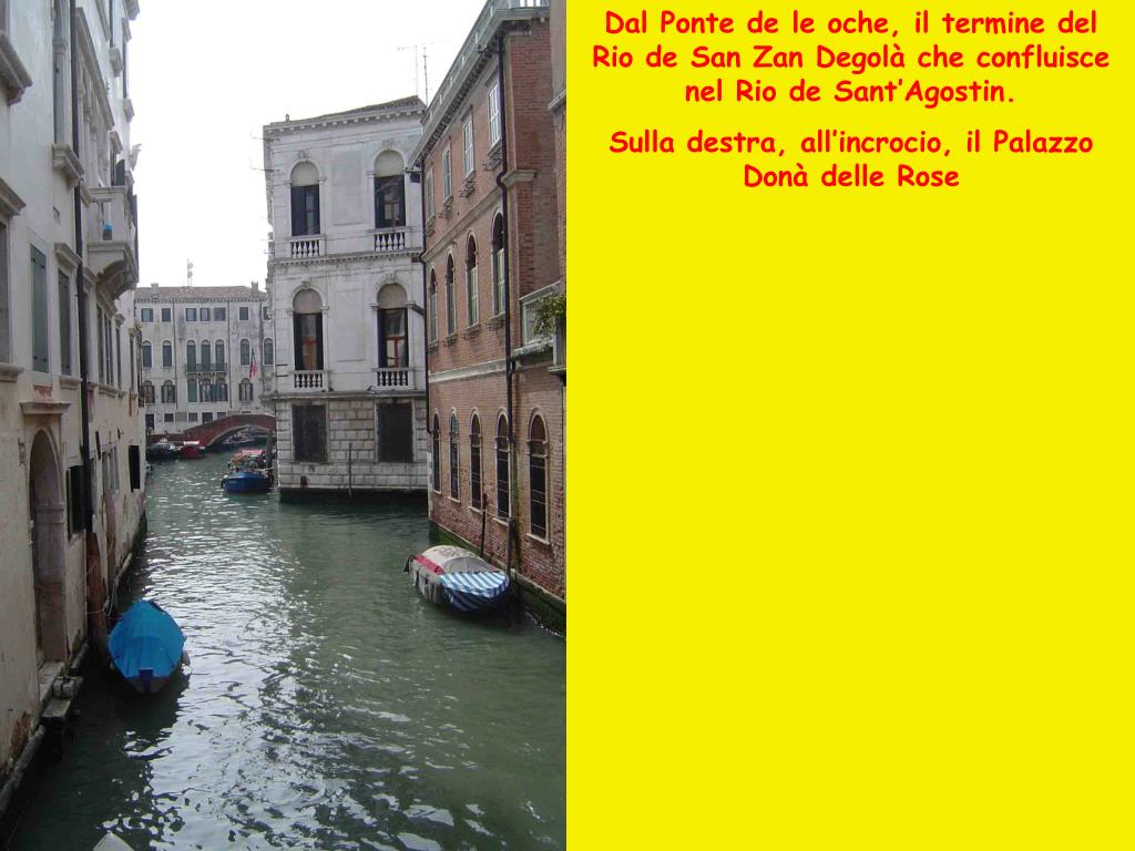 Dal Ponte de le oche, il termine del Rio de San Zan Degolà che confluisce nel Rio de Sant’Agostin. Sulla destra, all’incrocio, il Palazzo Donà delle Rose