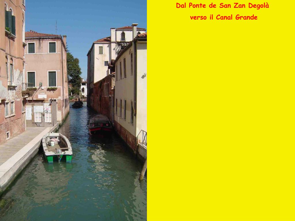 Rio de San Zan Degolà. Il rio prende il nome dagli ’omonimi chiesa e campo che si affacciano sul rio. In giallo il tratto relativo al Rio di San Zan degolà. Dal Ponte de San Zan Degolà verso il Canal Grande.