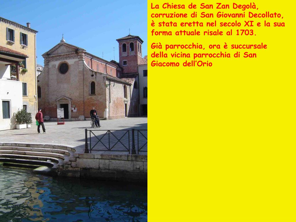 La Chiesa de San Zan Degolà, corruzione di San Giovanni Decollato, è stata eretta nel secolo XI e la sua forma attuale risale al 1703. Già parrocchia, ora è succursale della vicina parrocchia di San Giacomo dell’Orio