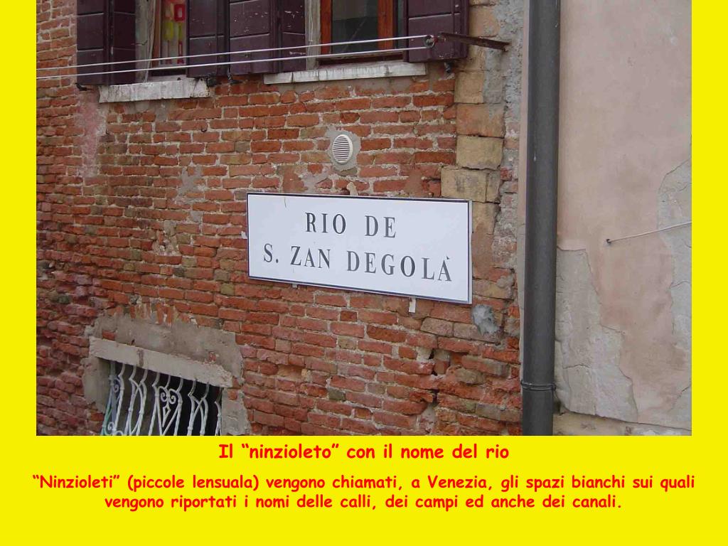 Il “ninzioleto” con il nome del rio “Ninzioleti” (piccole lensuala) vengono chiamati, a Venezia, gli spazi bianchi sui quali vengono riportati i nomi delle calli, dei campi ed anche dei canali.