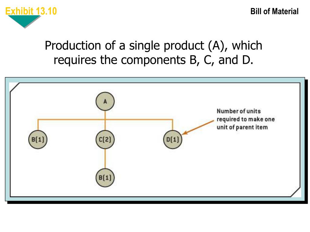 Bill of Material Exhibit 13.10 Production of a single product (A), which requires the components B, C, and D.