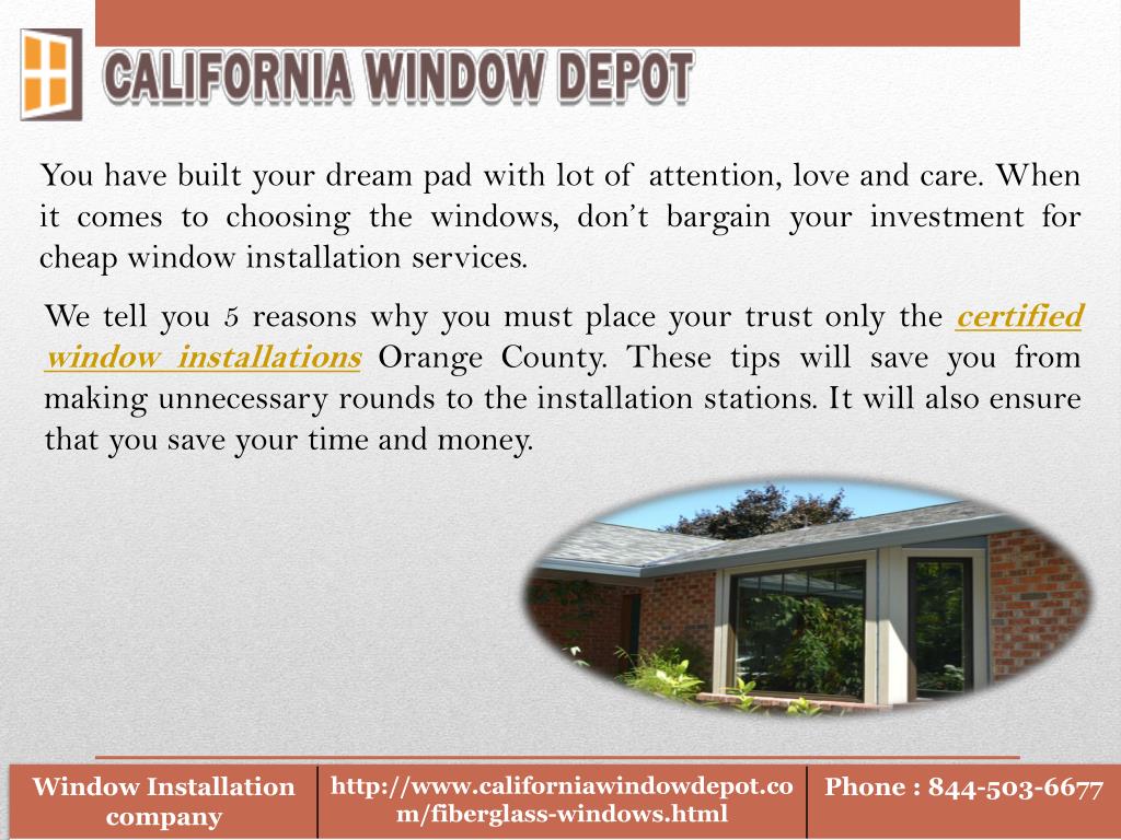 You have built your dream pad with lot of attention, love and care. When it comes to choosing the windows, don’t bargain your investment for cheap window installation services. We tell you 5 reasons why you must place your trust only the certified window installationsOrange County. These tips will save you from making unnecessary rounds to the installation stations. It will also ensure that you save your time and money.