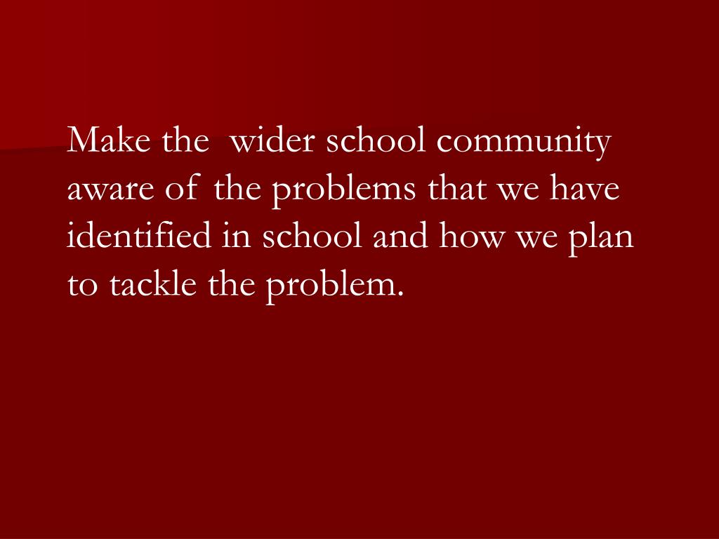 Make the wider school community aware of the problems that we have identified in school and how we plan to tackle the problem.