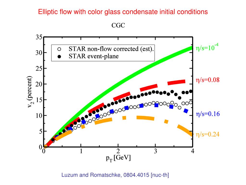 Elliptic flow with color glass condensate initial conditions Luzum and Romatschke, 0804.4015 [nuc-th]
