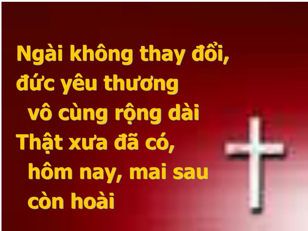 Ngài không thay đổi, • đức yêu thương • vô cùng rộng dài • Thật xưa đã có, • hôm nay, mai sau • còn hoài