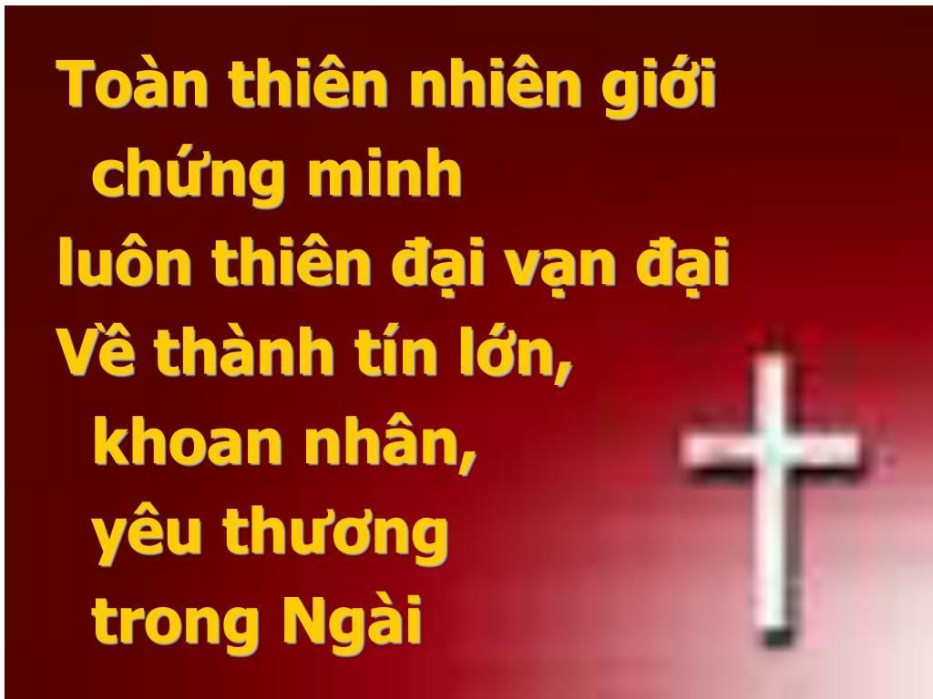 Toàn thiên nhiên giới • chứng minh • luôn thiên đại vạn đại • Về thành tín lớn, • khoan nhân, • yêu thương • trong Ngài