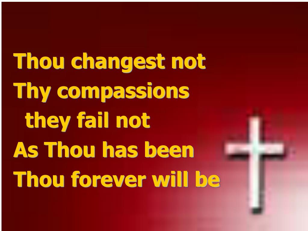 Thou changest not • Thy compassions • they fail not • As Thou has been • Thou forever will be
