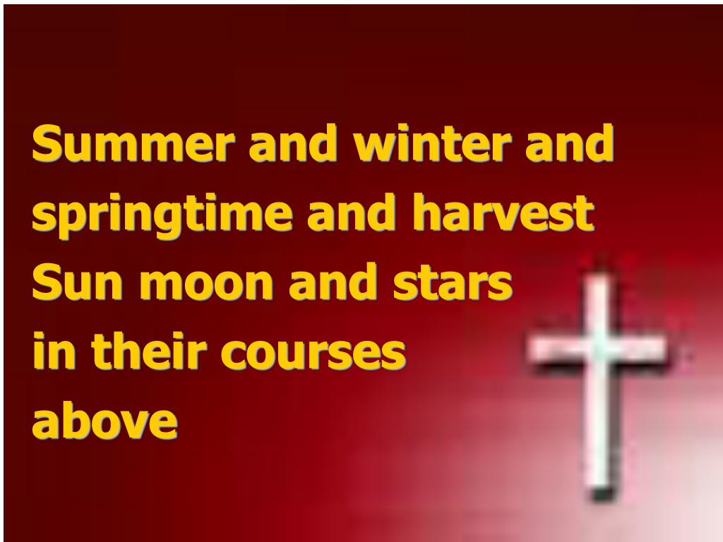 Summer and winter and • springtime and harvest • Sun moon and stars • in their courses • above