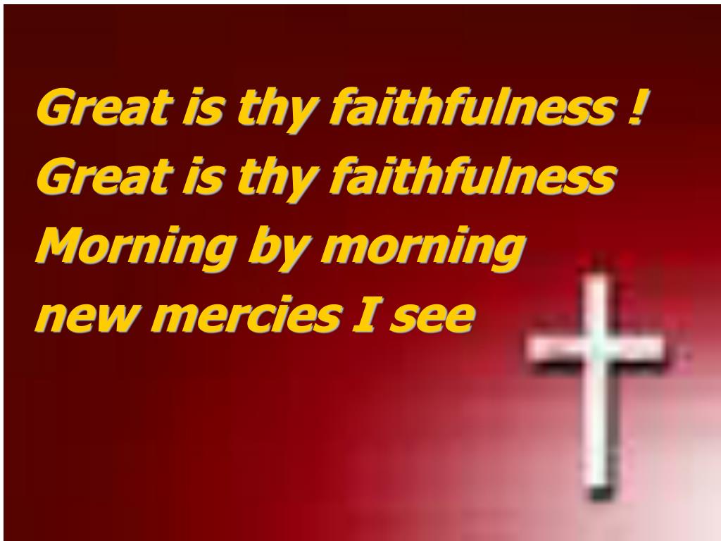Great Is Thy Faithfulness. Great is thy faithfulness O God my Father There is no shadow of turning with Thee. Thou changest not Thy compassions they fail not As Thou has been Thou forever will be. Great is thy faithfulness ! Great is thy faithfulness Morning by morning