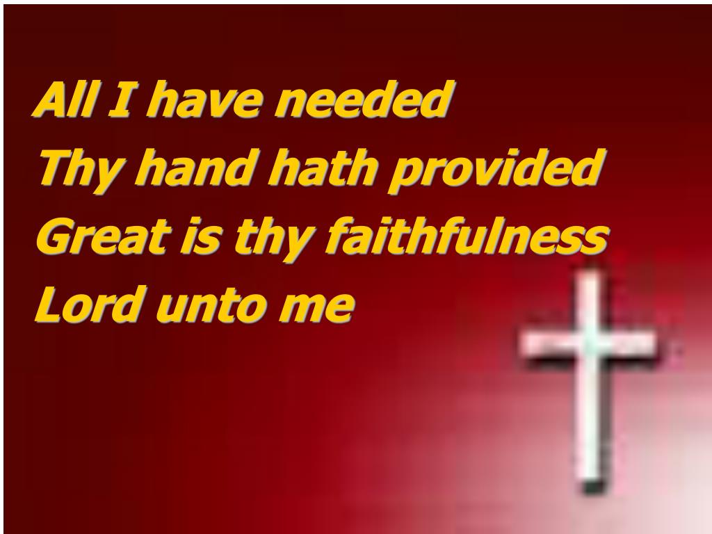 All I have needed • Thy hand hath provided • Great is thy faithfulness • Lord unto me