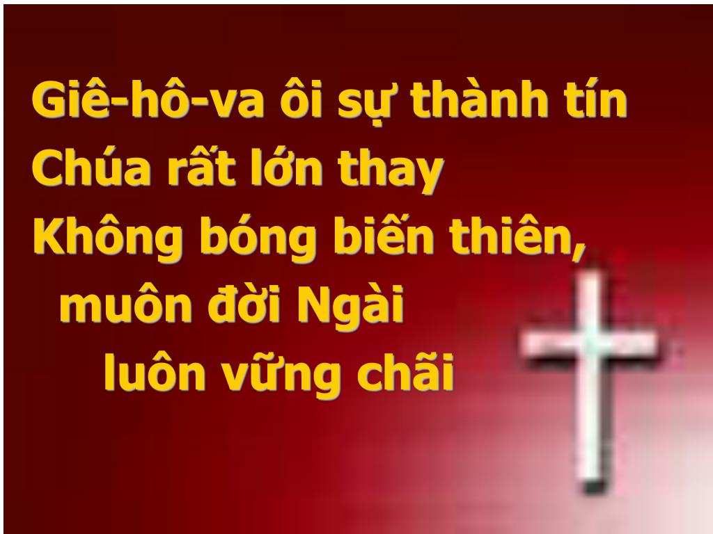Giê-hô-va ôi sự thành tín • Chúa rất lớn thay • Không bóng biến thiên, • muôn đời Ngài • luôn vững chãi
