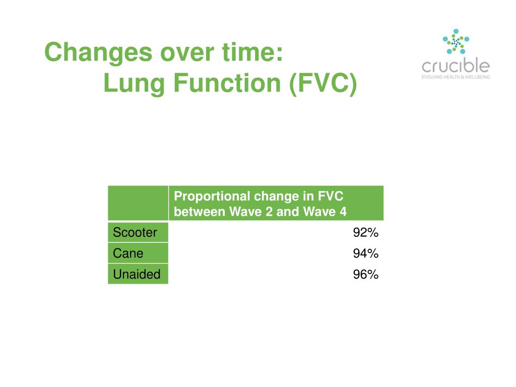 Conclusion • All capabilities lessen over time • Scooter users lose the most • Scooters users have the highest rates of inability to complete (in single waves and over time) Scooter use may accelerate frailty, mobility difficulties and further disability