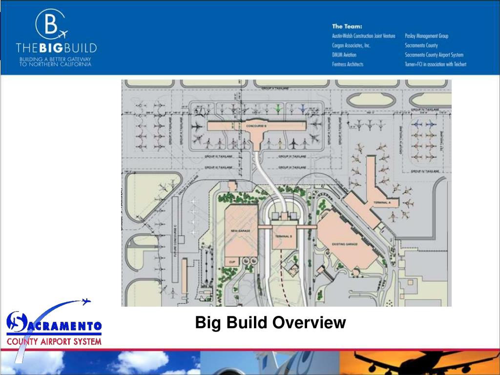 Terminal A remains as unit terminal with modifications • Landside Terminal • 19 Gate Airside Concourse • Automated People Mover • Two Level Structured Roadway • B Parking Garage • Pedestrian Bridges • In-terminal Hotel • Remote Receiving Facility • LRT Connection • Future Expansion Big Build Overview