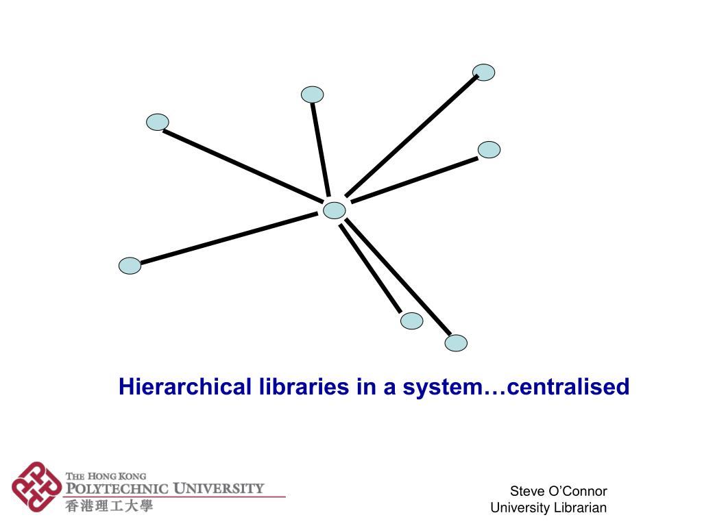 Hierarchical libraries in a system…centralised Steve O’Connor University Librarian