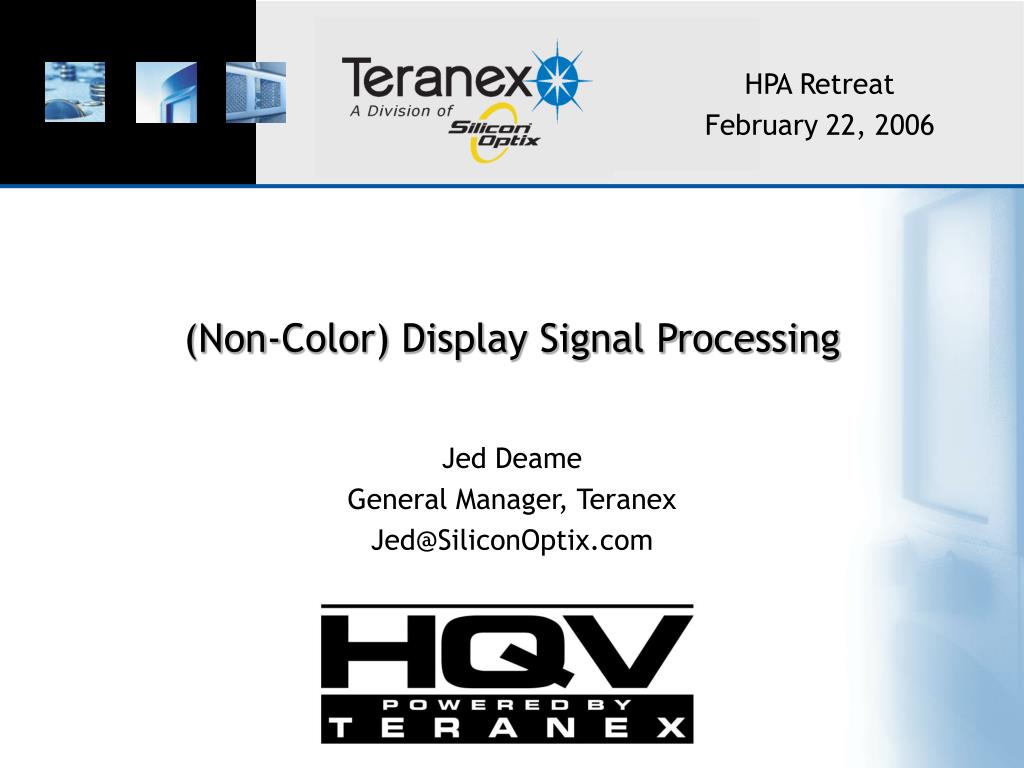 HPA Retreat February 22, 2006 (Non-Color) Display Signal Processing Jed Deame General Manager, Teranex Jed@SiliconOptix.com