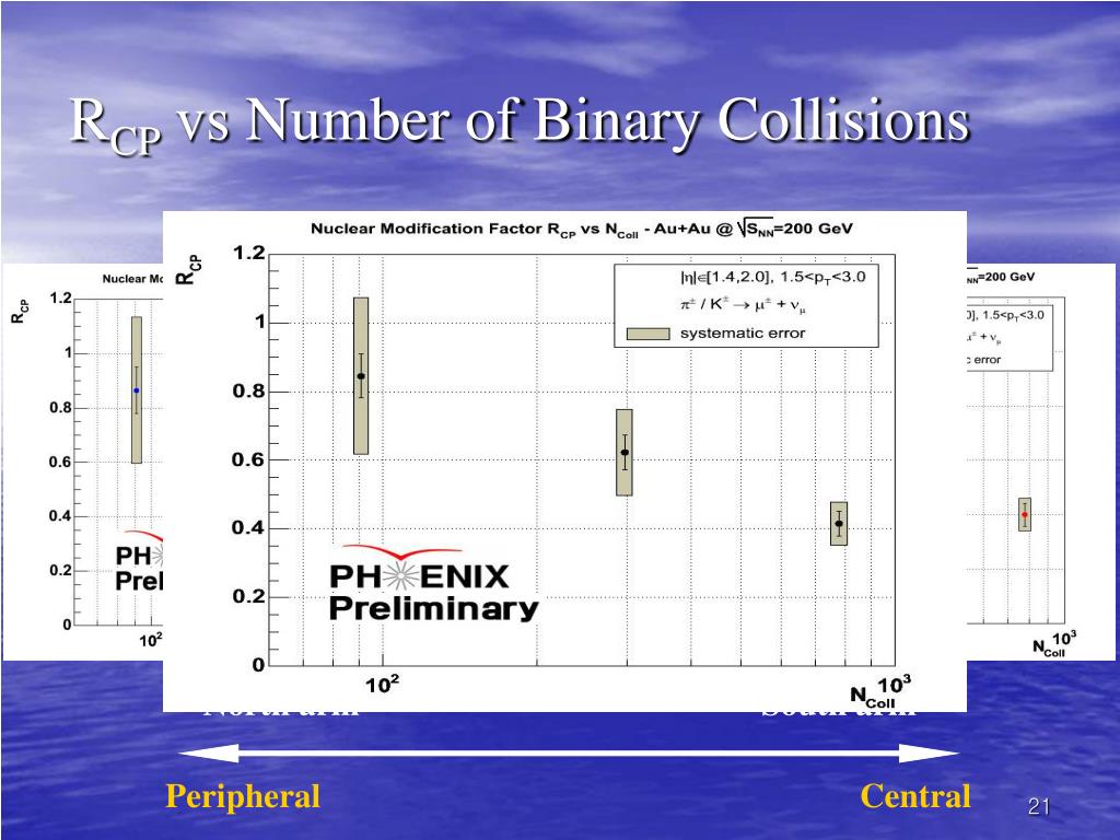 North arm South arm Peripheral Central RCP vs Number of Binary Collisions