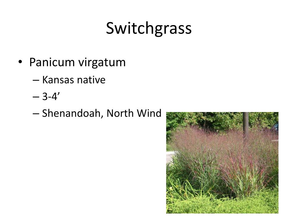 Switchgrass • Panicum virgatum • Kansas native • 3-4’ • Shenandoah, North Wind