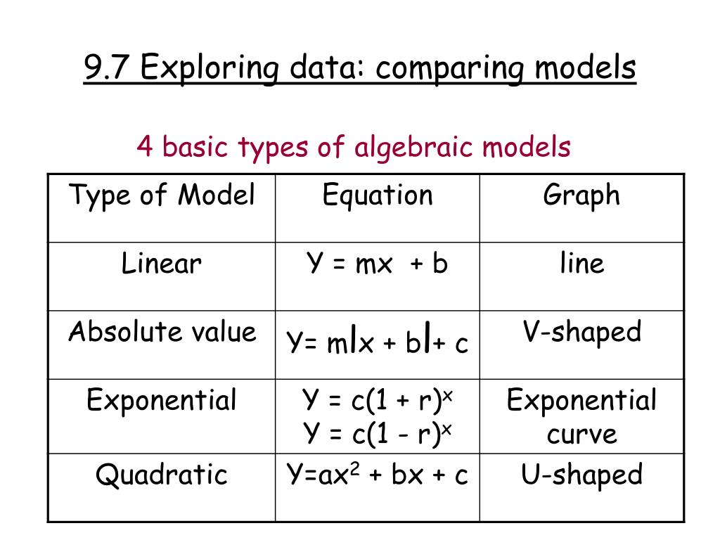 9.7 Exploring data: comparing models 4 basic types of algebraic models