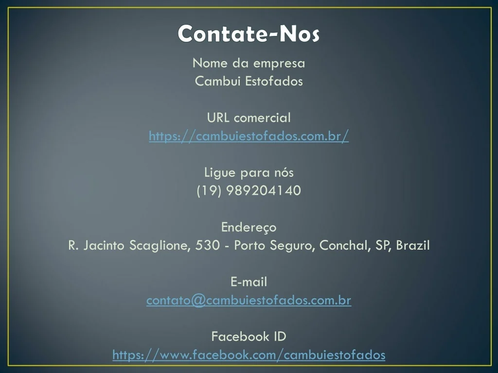 Contate-Nos Nome da empresa CambuiEstofados URL comercial https://cambuiestofados.com.br/ Ligueparanós (19) 989204140 Endereço R. Jacinto Scaglione, 530 - Porto Seguro, Conchal, SP, Brazil E-mail contato@cambuiestofados.com.br Facebook ID https://www.facebook.com/cambuiestofados