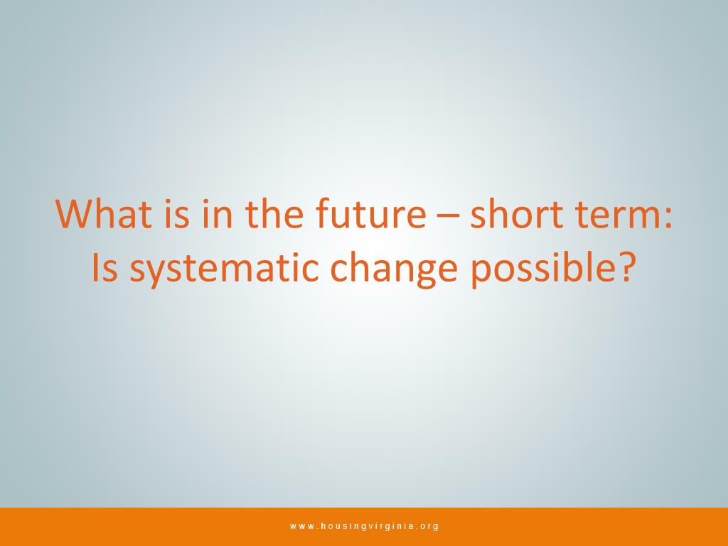 Housing Virginia Video Presentations “The Potential for Systematic Change” by Eric Handleman Click to view video - Internet connection is required. Disclaimer: Videos in the PowerPoint will not play on a mobile device. Please access these documents from a laptop or desktop to enjoy the complete presentation.
