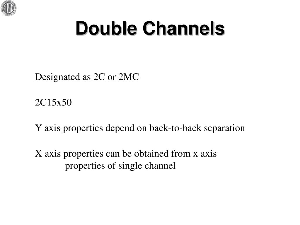 Double Channels Designated as 2C or 2MC 2C15x50 Y axis properties depend on back-to-back separation X axis properties can be obtained from x axis properties of single channel