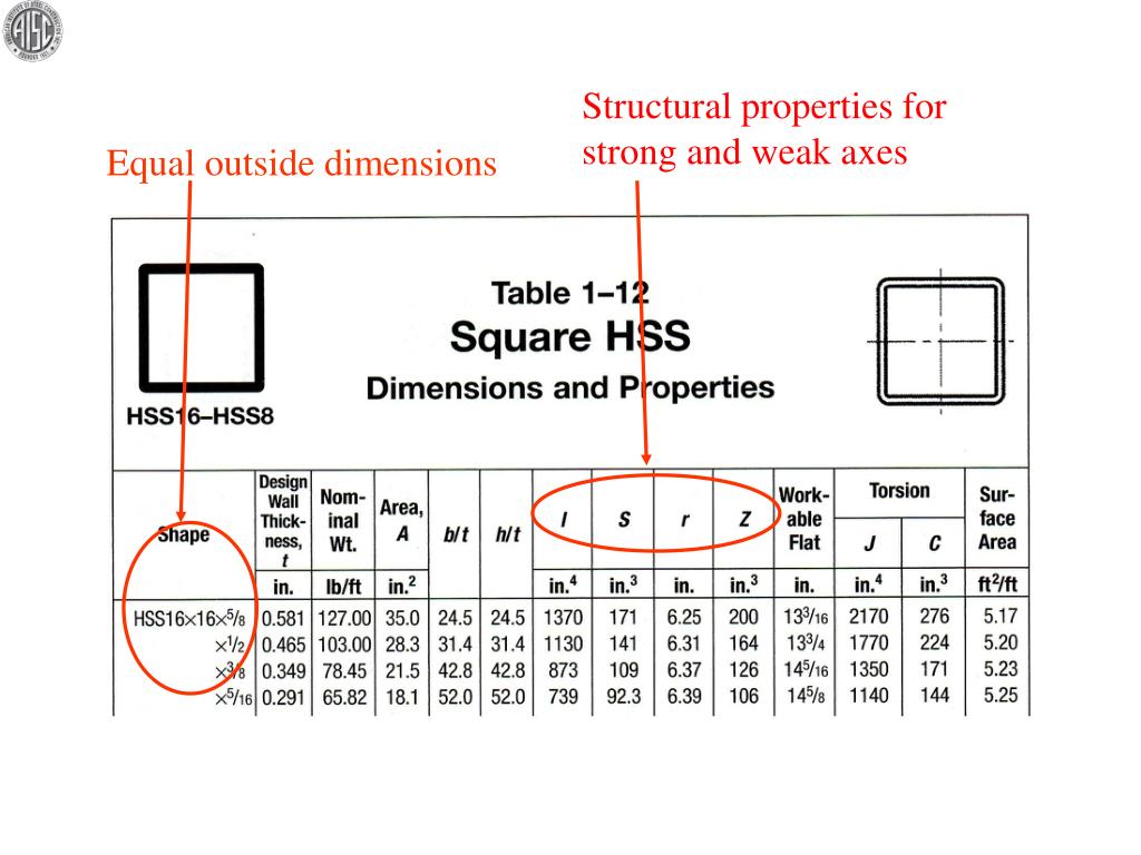 Outside Longer Dimension Strong axis structural properties Actual Wall Thickness Design Wall Thickness = 0.93 x Actual Wall Thickness Outside Shorter Dimension
