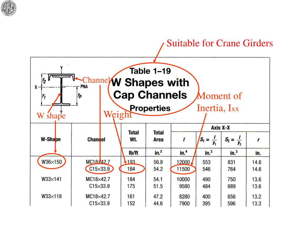 Suitable for Crane Girders Channel Moment of Inertia, Ixx Weight W shape