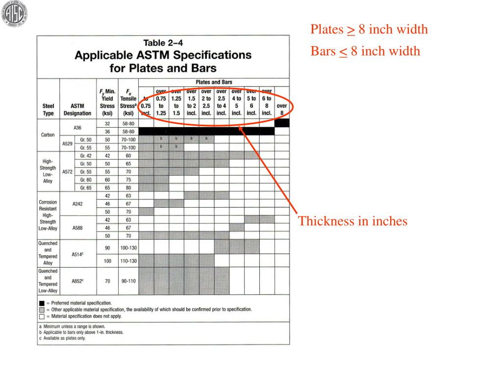 Plates > 8 inch width Bars < 8 inch width Thickness in inches