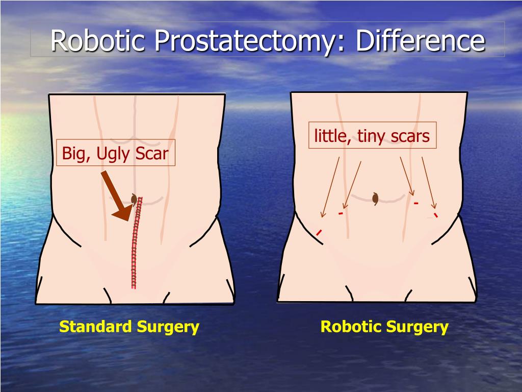 Robotic Prostatectomy: Difference little, tiny scars Big, Ugly Scar Standard Surgery Robotic Surgery