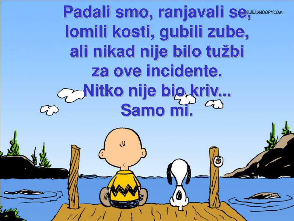 Padali smo, ranjavali se, lomili kosti, gubili zube, ali nikad nije bilo tužbi za ove incidente. Nitko nije bio kriv... Samo mi.