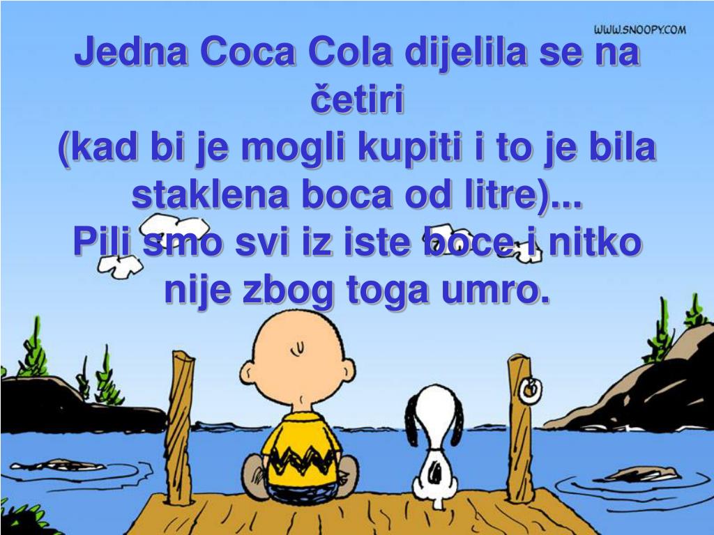 Jedna Coca Cola dijelila se na četiri (kadbi je mogli kupitii to je bilastaklena boca od litre)... Pilismo sviiziste bocei nitko nije zbog toga umro.