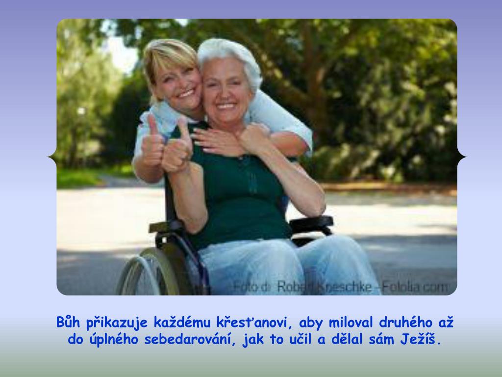 Bůh přikazuje každému křesťanovi, aby miloval druhého až do úplného sebedarování, jak to učil a dělal sám Ježíš.