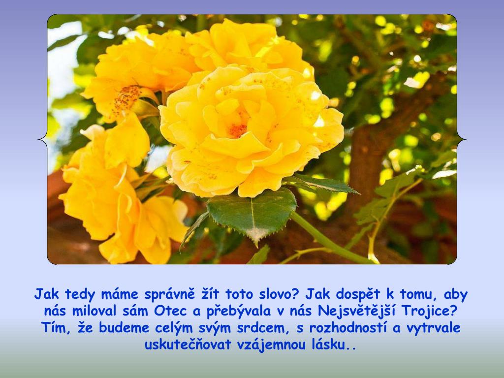 Jak tedy máme správně žít toto slovo? Jak dospět k tomu, aby nás miloval sám Otec a přebývala v nás Nejsvětější Trojice? Tím, že budeme celým svým srdcem, s rozhodností a vytrvale uskutečňovat vzájemnou lásku..