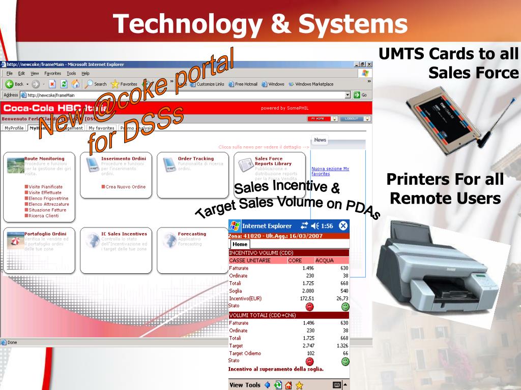 Printers For all Remote Users Sales Incentive & Target Sales Volume on PDAs Technology & Systems UMTS Cards to all Sales Force New @coke portal for DSSs