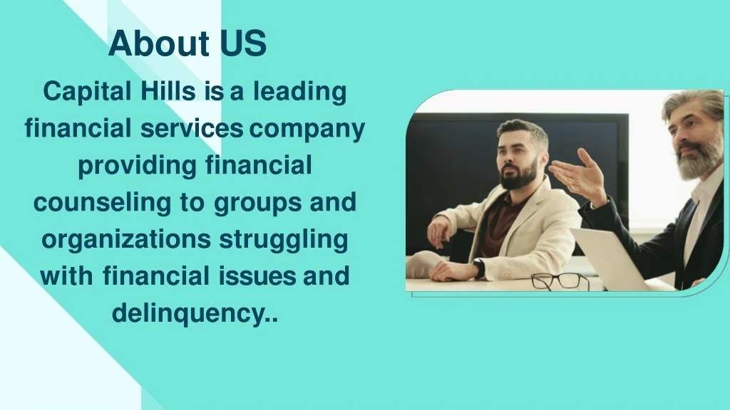 AboutUS Capital Hills is a leading financial servicescompany providing financial counseling to groups and organizations struggling with financial issues and delinquency..