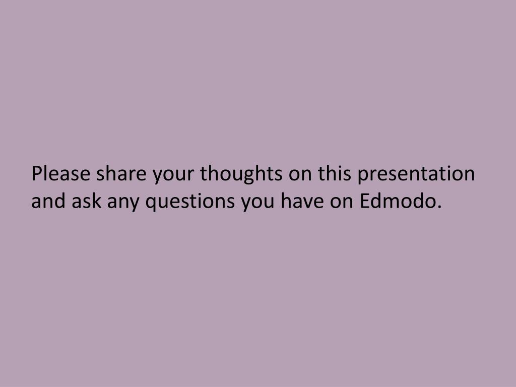 Please share your thoughts on this presentation and ask any questions you have on Edmodo.